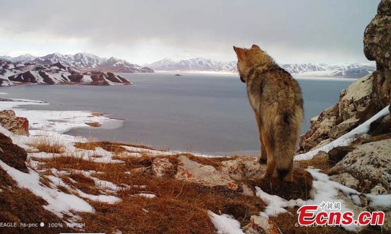 A picture taken by an infrared camera shows a wolf at the source region of the Yellow River in Northwest China’s Qinghai Province.(Photo provided to China News Service)