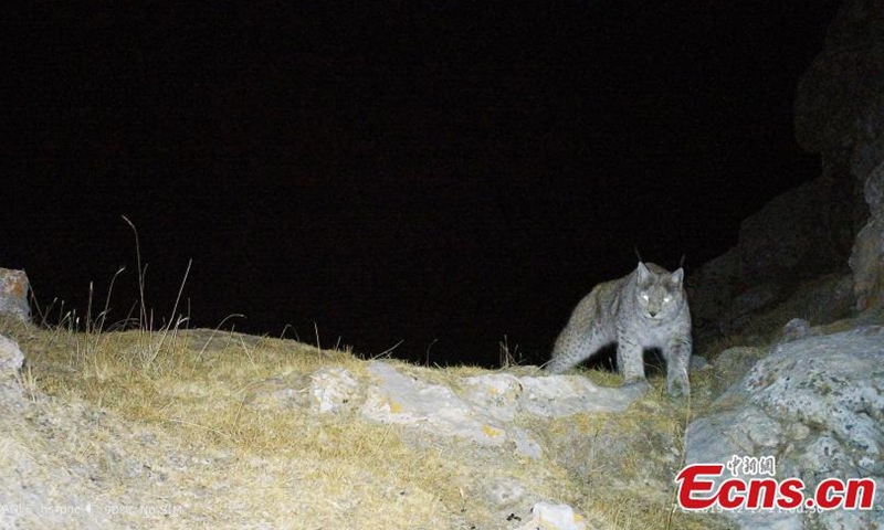 A picture taken by an infrared camera shows a lynx at the source region of the Yellow River in Northwest China’s Qinghai Province.(Photo provided to China News Service)