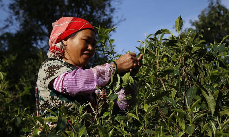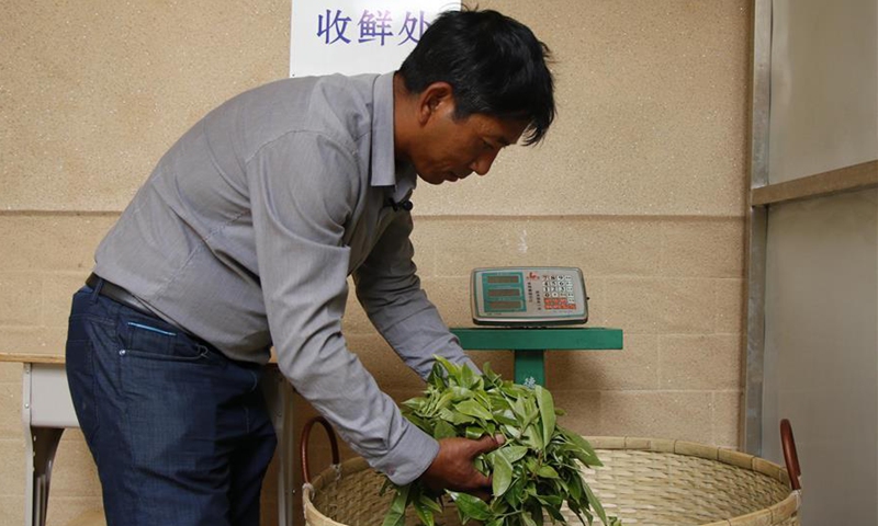 A local tea farmer selects tea leaves in Laobanzhang Village of Menghai County in Xishuangbanna Dai Autonomous Prefecture, southwest China's Yunnan Province, May 30, 2020. Menghai County is a famous Pu'er tea growing area with a long history of tea planting, making, using, drinking and trading. In Laobanzhang Village of Menghai County, some local tea farmers inherit and retain the traditional hand-made tea techniques. The hand-made tea produced by local farmers is popular in the market. Photo:Xinhua
