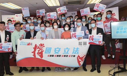 Hong Kong residents from all walks of life collect online signatures and hold a gathering on Sunday morning to show their support for the draft bill to safeguard the national security law to be implemented in the Hong Kong Special Administrative Region. The legal agenda was announced on Thursday night. Photo: cnsphoto