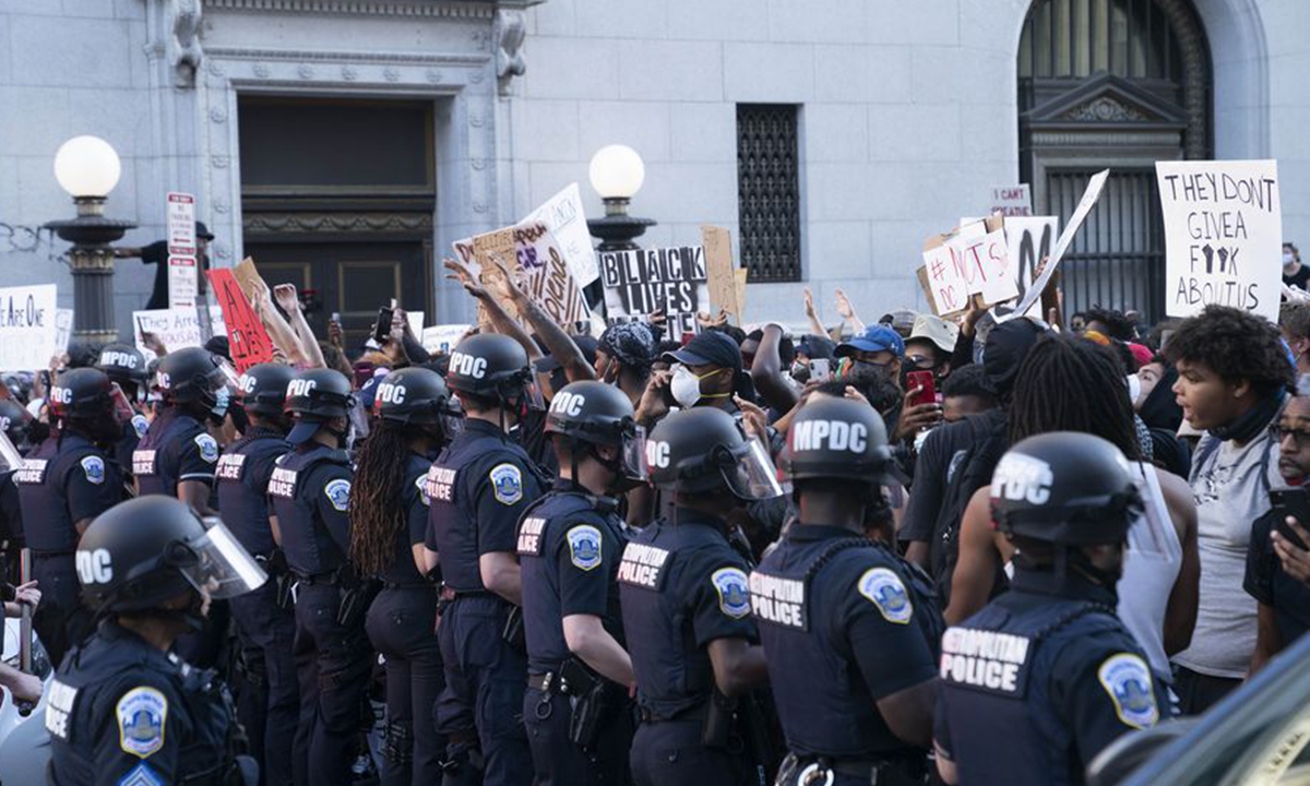 Protesters confront police during a protest over the death of George Floyd in Washington D.C., the United States, on May 31, 2020. (Xinhua/Liu Jie)