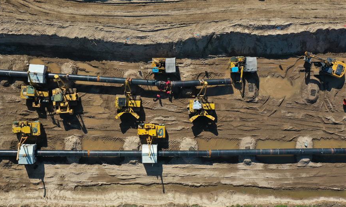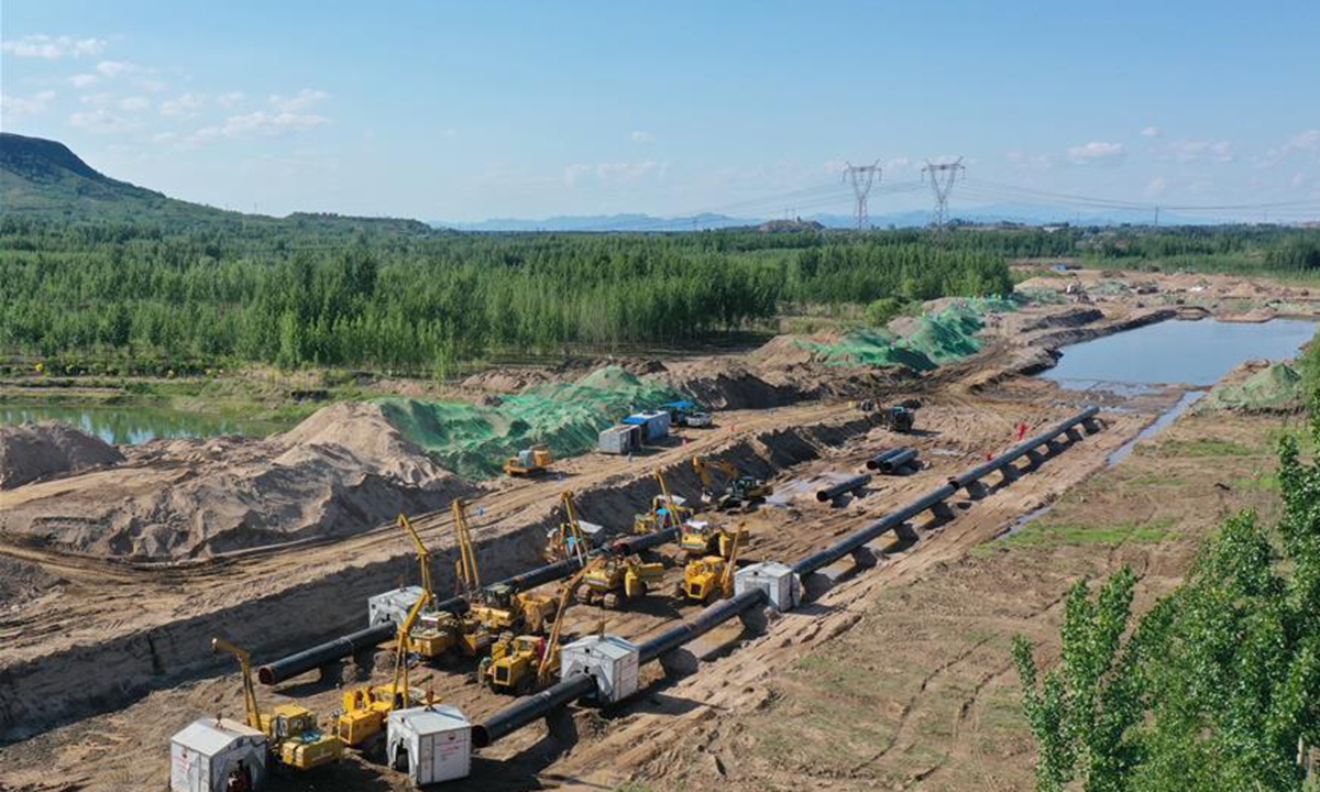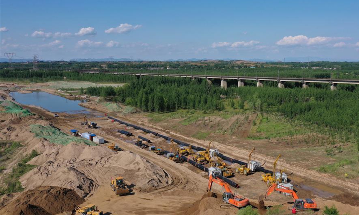 Aerial photo taken on June 4, 2020 shows the construction site of the Changling-Yongqing section of the China-Russia east-route natural gas pipeline in Youzha Township of Luanzhou City, north China's Hebei Province. (Xinhua/Yang Shiyao)