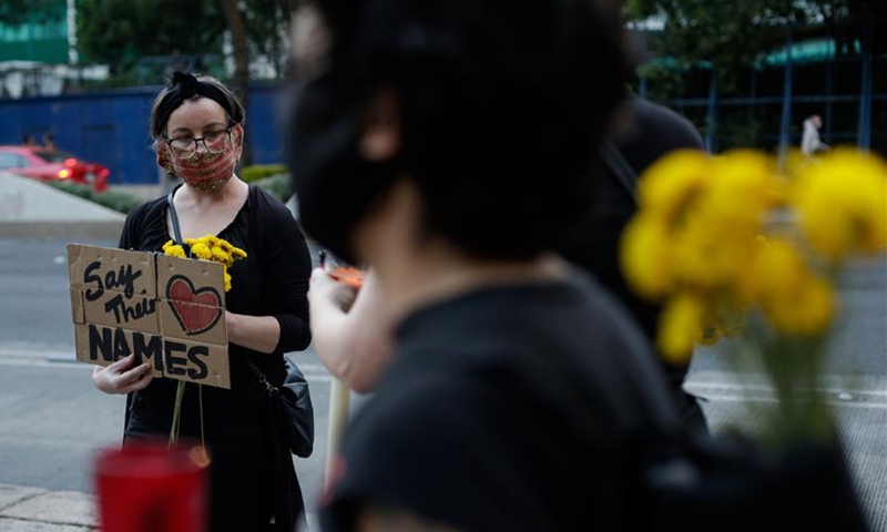 Demonstrators take part in a protest over the death of George Floyd in Mexico City, Mexico, on June 4, 2020. Photo:Xinhua