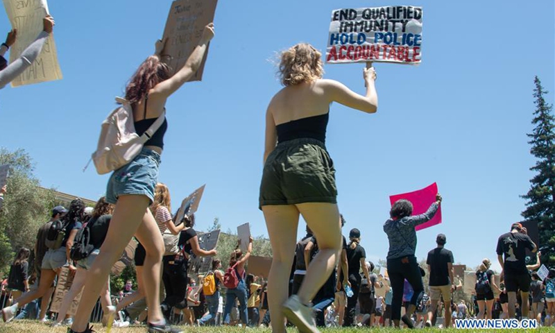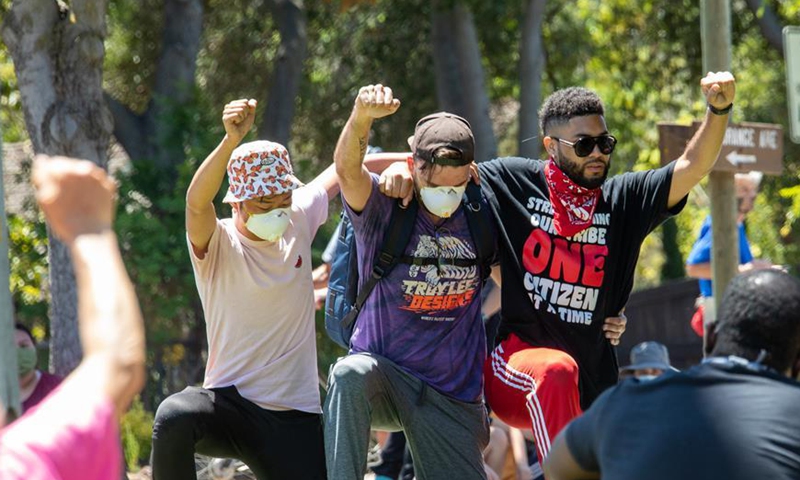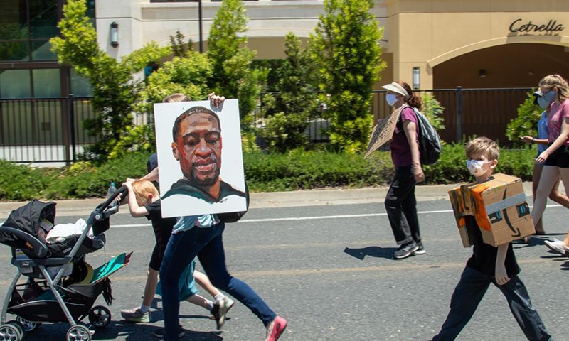 People attend a protest over the death of George Floyd in Los Altos of the San Francisco Bay Area, the United States, June 5, 2020. Photo:Xinhua