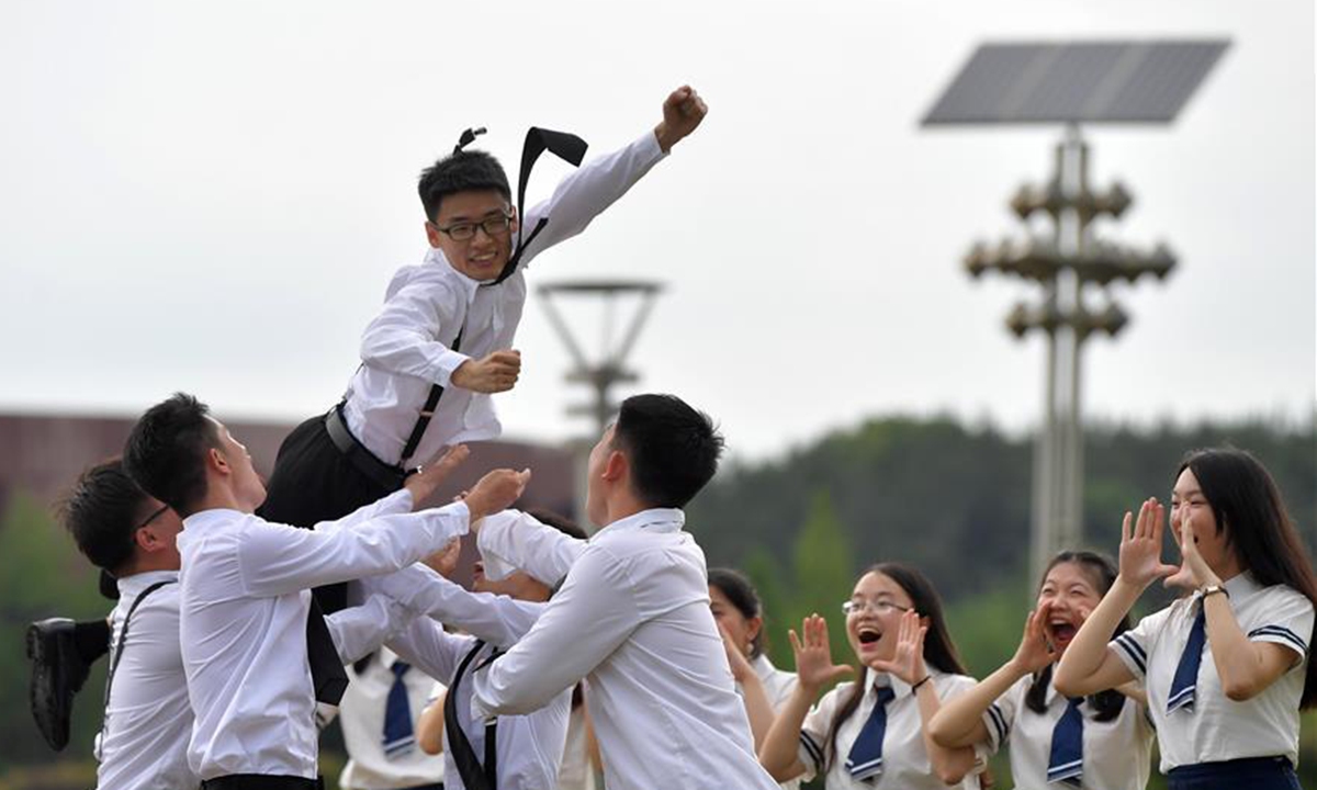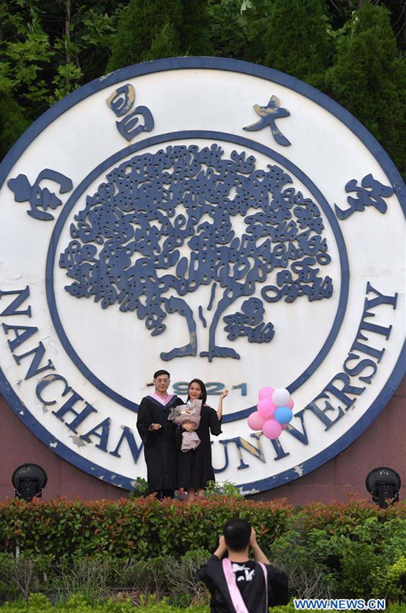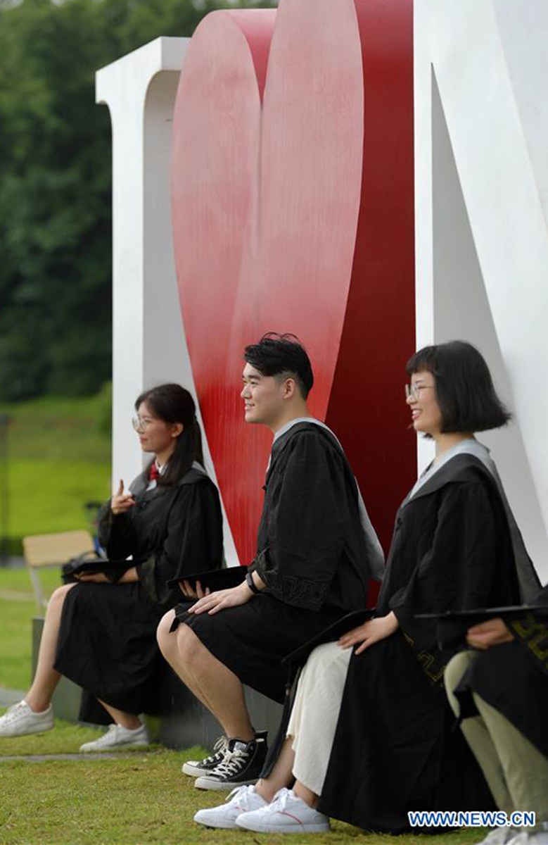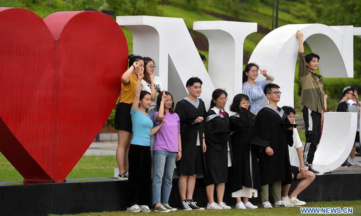 Students pose for a graduate photo at Nanchang University in Nanchang, east China's Jiangxi Province, June 10, 2020. (Xinhua/Peng Zhaozhi)