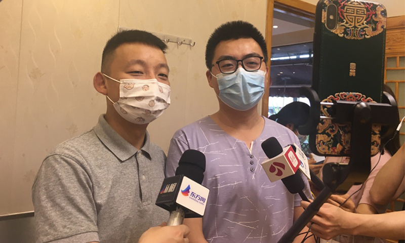 Yao Ce (left), an advanced liver cancer patient from East China's Jiangxi Province, and Guo Wei, from Central China's Henan Province, celebrated their birthdays for the first time with their respective biological parents in Shanghai on Monday. Photo: Du Qiongfang/GT