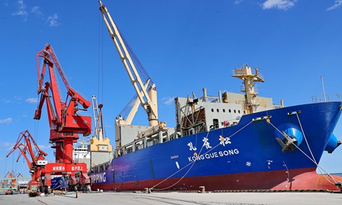 The last batch of 5,500 tons of materials has been transported from Qinhuangdao, North China's Hebei Province to the Port of Mongla in Bangladesh for construction of the Padma Bridge. The Chinese-built project is proceeding under the Belt and Road Initiative. Despite the COVID-19 outbreak, work is proceeding normally. Photo: cnsphoto