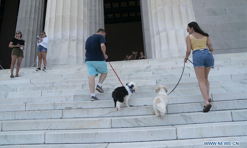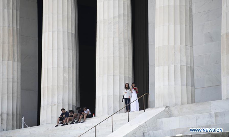 People visit the Lincoln Memorial in Washington, D.C., the United States, on June 22, 2020. U.S. COVID-19 deaths surpassed 120,000 on Monday with nearly 2.3 million infections, while new cases continue to increase across the country over three months into the pandemic. (Xinhua/Liu Jie)