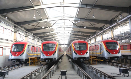 Trains of the metro train service are seen at a terminal station in Lahore, Pakistan, on December 10, 2019. Pakistan's first-ever mass rapid urban transit train took its first test run on Tuesday after the completion of the physical infrastructure of the project under the CPEC. Photo: Xinhua