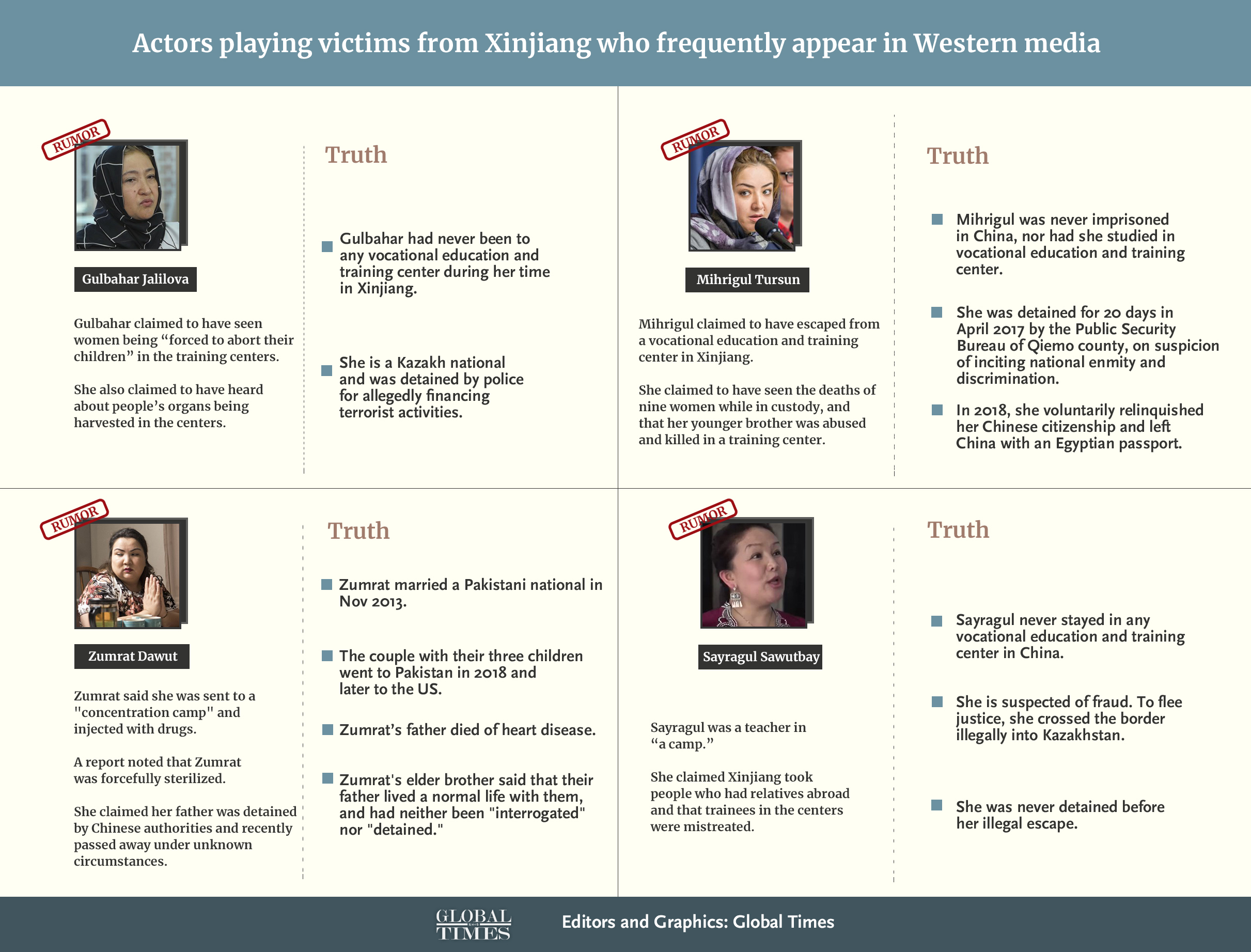 It seems that when some Western media or researcher come up with new ideas to accuse China's policies in Xinjiang, they talk to the same people, like Gulbahar, and will always get a satisfying answer for different topics, experts and observers said.