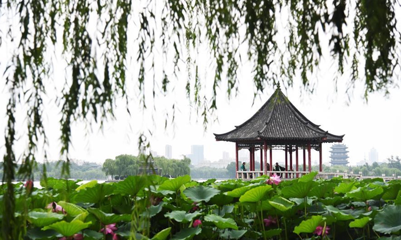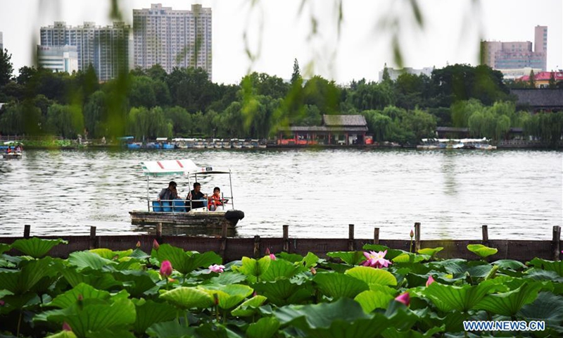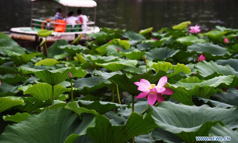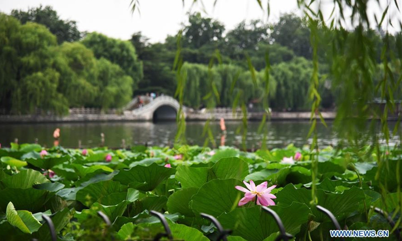 Photo taken on July 3, 2020 shows lotus flowers after a rainfall at Daming Lake scenic spot in Jinan, east China's Shandong Province.Photo:Xinhua