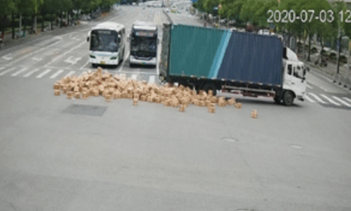 It is possible that the truck's door suddenly opened because the tuck was overloaded, local traffic police said. With a maximum load of eight tons, it carried more than 11 tons of liquors that day.