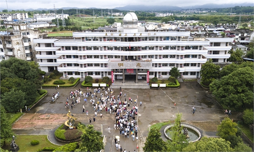 Gaokao candidates in Shexian of East China's Anhui Province walk into the county's examination site for a make-up test on Thursday morning. Photo: Yang Hui/GT