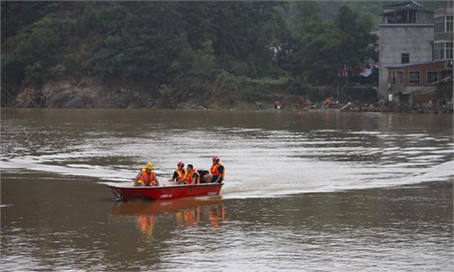 Floods destroy part of the Song-dynasty bridge, Caihong Bridge, in Shangrao city, East China’s Jiangxi Province on Thursday. Photo: VCG