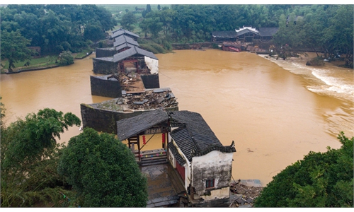 As water levels return to normal, more than 10 wooden pieces of the bridge that were washed away by the flood have been found with the help of local villagers, Si Wei, an employee of the Jiangxi Wuyuan Tourism Company, told the Global Times on Monday.