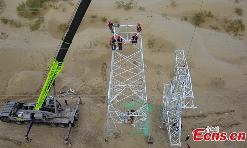 Electricity workers carry out field operations at a transformer substation during mid-June in Tahe, northwest China's Xinjiang Uygur Autonomous Region.Photo:China News