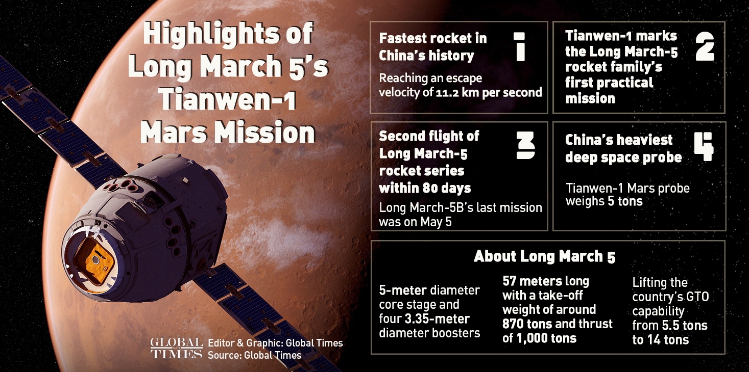 Highlights of Long March 5's Tianwen-1 Mars Mission