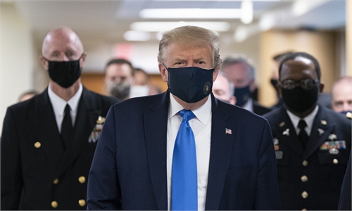 US President Donald Trump wears a mask as he visits Walter Reed National Military Medical Center in Bethesda, Maryland on Saturday. Photo: AFP
