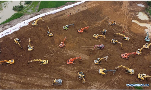 It was found that the shops in the back slope of the embankment remained open until Sunday even as the city continued its high alert level for flooding and heavy rain. Preliminary measurements show that the deepest part of the construction reached halfway into the embankment, CCTV news reported.