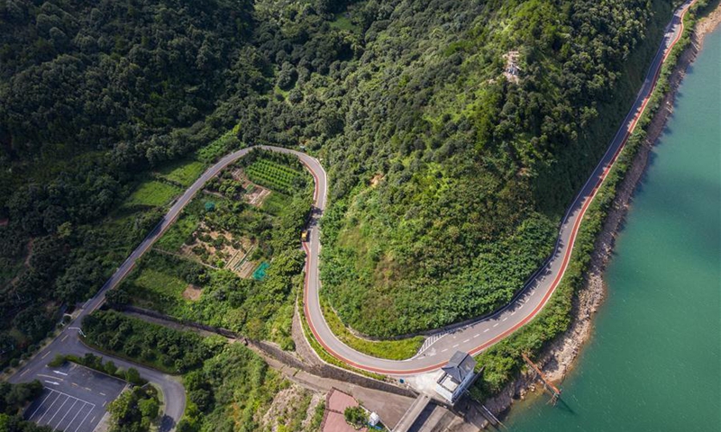 Photo shows a view of Xinjian Village of Ganlan Township, Dinghai District, Zhoushan, east China's Zhejiang Province, Aug. 3, 2020. In recent years, the Dinghai District authorities have devoted all-round efforts to improve sanitation and tourist appeal in its rural areas. Statistics show that villages under Dinghai District have received 1.73 million visitor trips in 2019, earning 2.431 billion yuan (348 million U.S. dollars) in tourism revenue. (Xinhua/Xu Yu)