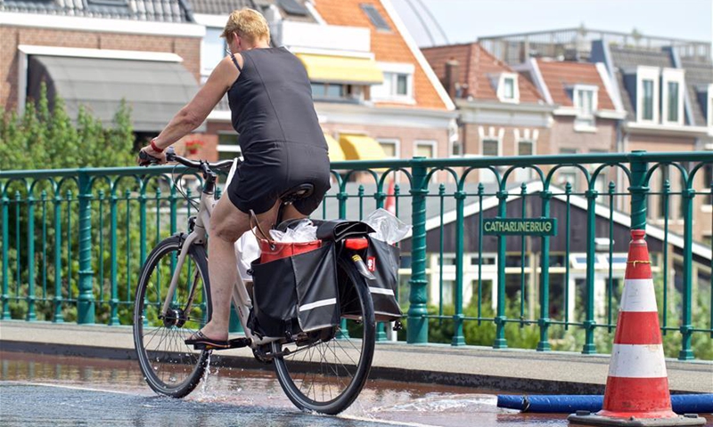 bridge is cooled with water on a hot day in Haarlem, the Netherlands, Aug. 8, 2020. (Photo by Sylvia Lederer/Xinhua)