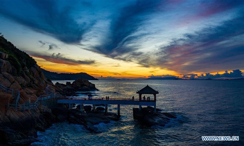 Aerial photo taken on July 25, 2020 shows a view of a footpath along the coast in Macao, south China. (Xinhua/Cheong Kam Ka)
