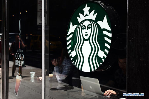A Starbucks logo is pictured in Manhattan, New York, the United States, May 29, 2018. File Photo: Xinhua
