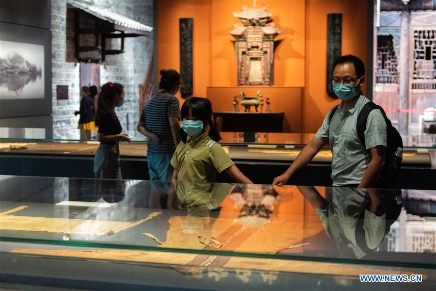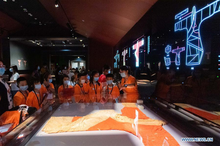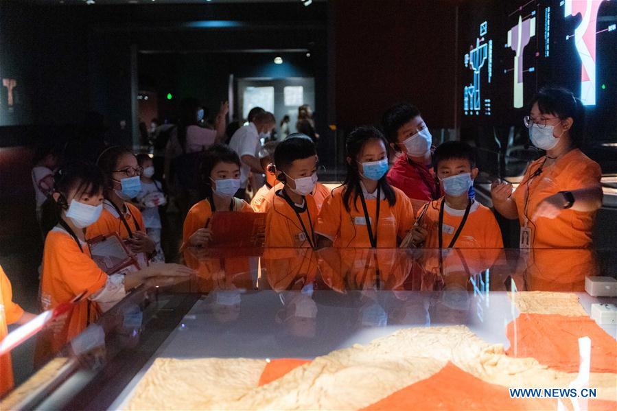 People visit Hunan Museum in Changsha, central China's Hunan Province, Aug. 25, 2020. With prevention measures against COVID-19, many children visited Hunan Museum with their parents during the summer vacation to learn about history and traditional culture. (Xinhua/Chen Sihan)