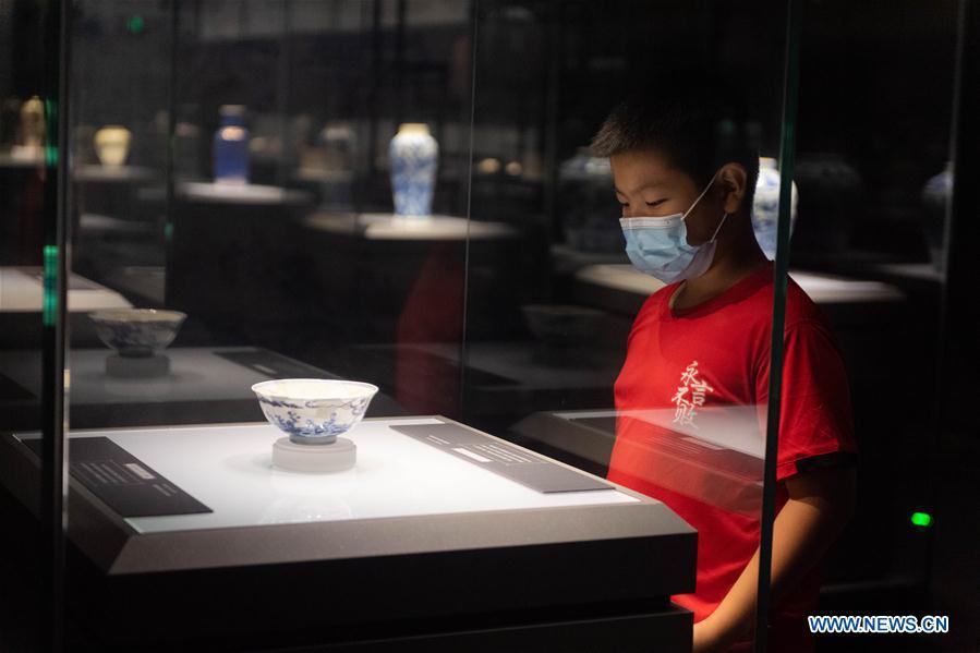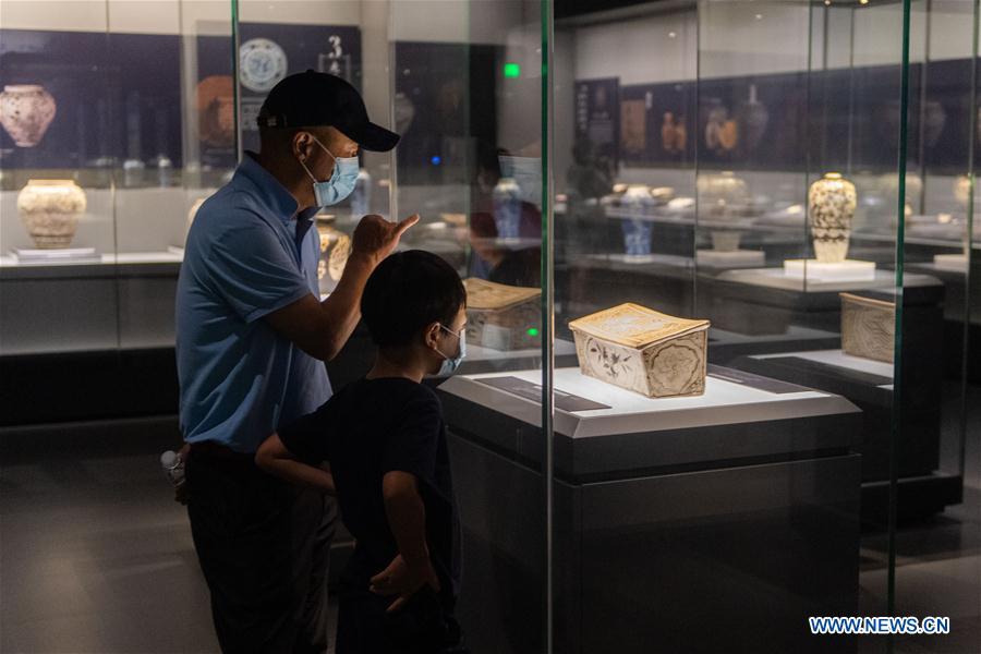 A child visits Hunan Museum in Changsha, central China's Hunan Province, Aug. 25, 2020. With prevention measures against COVID-19, many children visited Hunan Museum with their parents during the summer vacation to learn about history and traditional culture. (Xinhua/Chen Sihan)