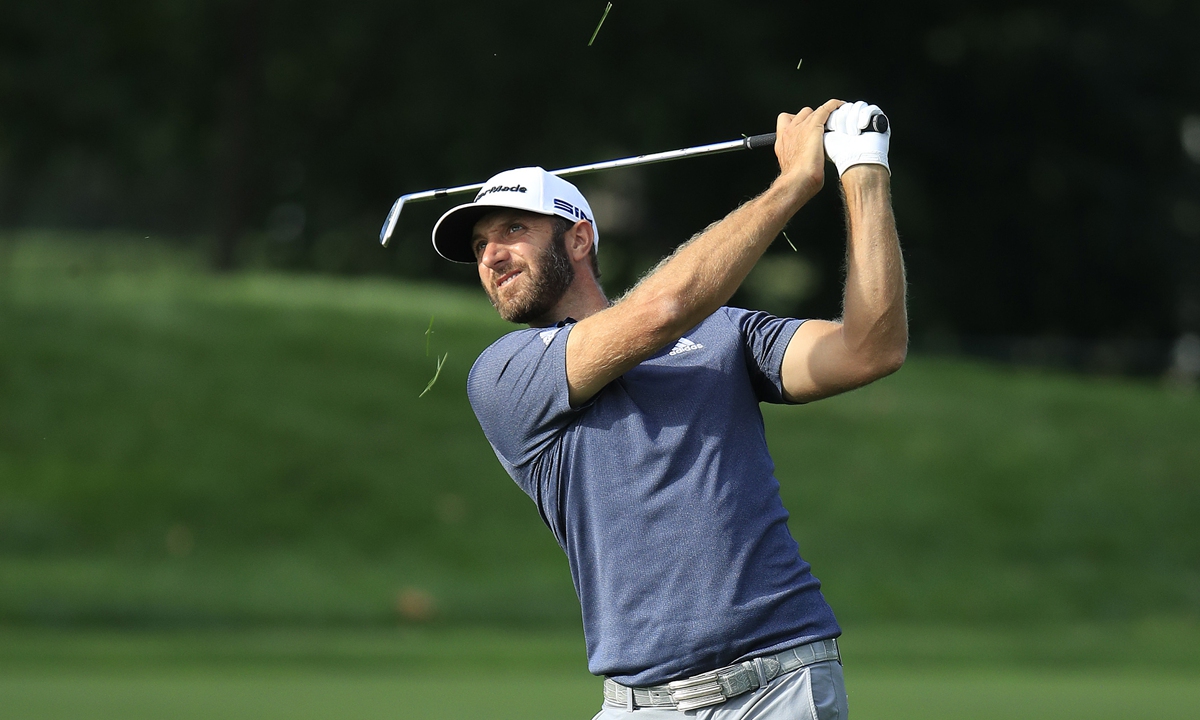 Dustin Johnson of the US plays a second shot on the 18th hole during the third round of the BMW Championship on Saturday in Olympia Fields, Illinois. Photo: VCG