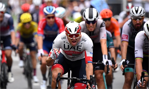 Team Jumbo-Visma rider Primoz Roglic sprints to win Stage 4 of the Tour de France on Tuesday. Photo: VCG