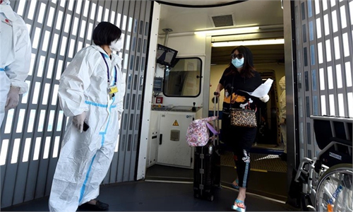 The passengers on the flight went through customs clearance, inspection and nucleic acid testing in a special area at the airport, and were transferred out of the airport by bus to a designated location for 14 days of intensive medical observation, a staff member at Beijing Capital International Airport confirmed to the Global Times on Thursday.