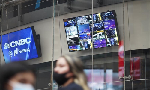 Pedestrians walk past electronic screens of the New York Stock Exchange (NYSE) in New York, the United States, Sept. 3, 2020. U.S. stocks plunged on Thursday, as a steep sell-off in tech shares dragged down the market. Photo:Xinhua