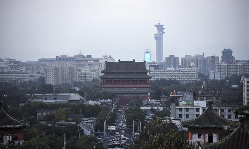 Photo taken on Sept. 4, 2020 shows the view along the central axis of Beijing, capital of China. The 2020 China International Fair for Trade in Services (CIFTIS) runs on Sept. 4-9 in Beijing. (Xinhua/Ju Huanzong)