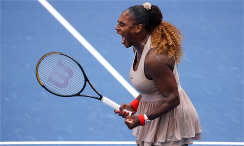 Serena Williams returns the ball during her quarterfinal match against Tsvetana Pironkova at the US Open on Wednesday in New York City. Photo: VCG