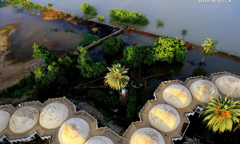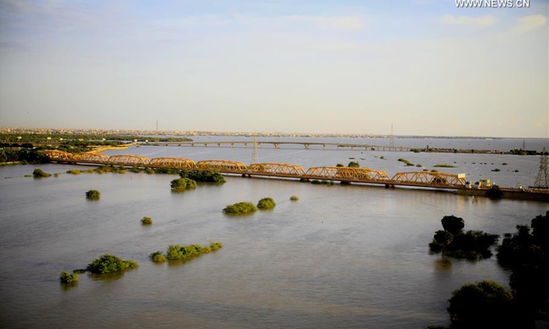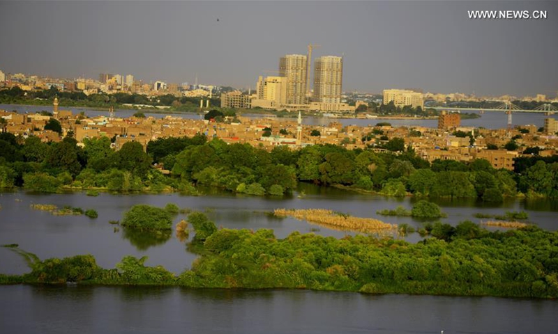 The water level of the Nile near the confluence of its two major tributaries, the White Nile and the Blue Nile, starts to gradually decline after unprecedented floods in Khartoum, Sudan, Sept. 11, 2020. Sudan often witnesses floods caused by heavy rains from June to October. (Photo by Mohamed Khidir/Xinhua)