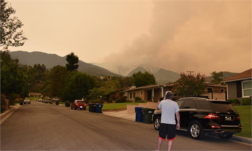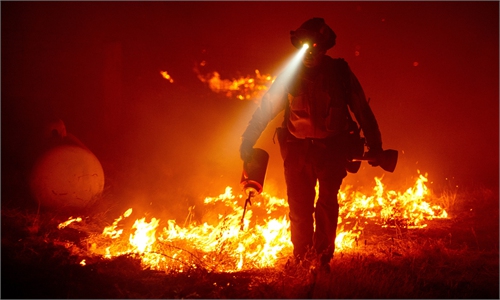 US President Donald Trump attends a briefing on wildfires in McClellan Park, California on Monday. Photo: VCG