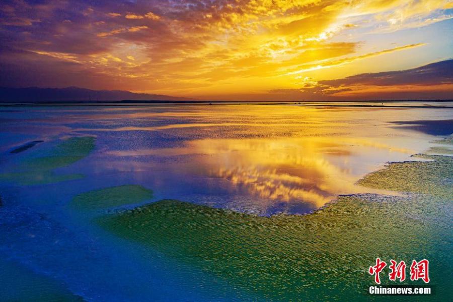 The photo shows the "Jade Lake" in Mangya, China's Qinghai province. The artificial salt lake, which when seen from afar resembles a shining piece of emerald, attracts thousands of tourists every year. (Photo: China News Service/ Huang Dong