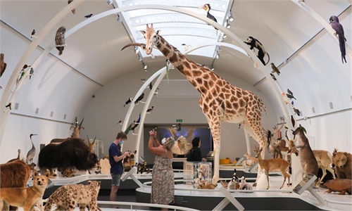 People take photos of the exhibits at the Museum of Royal Belgian Institute of Natural Sciences in Brussels, ...