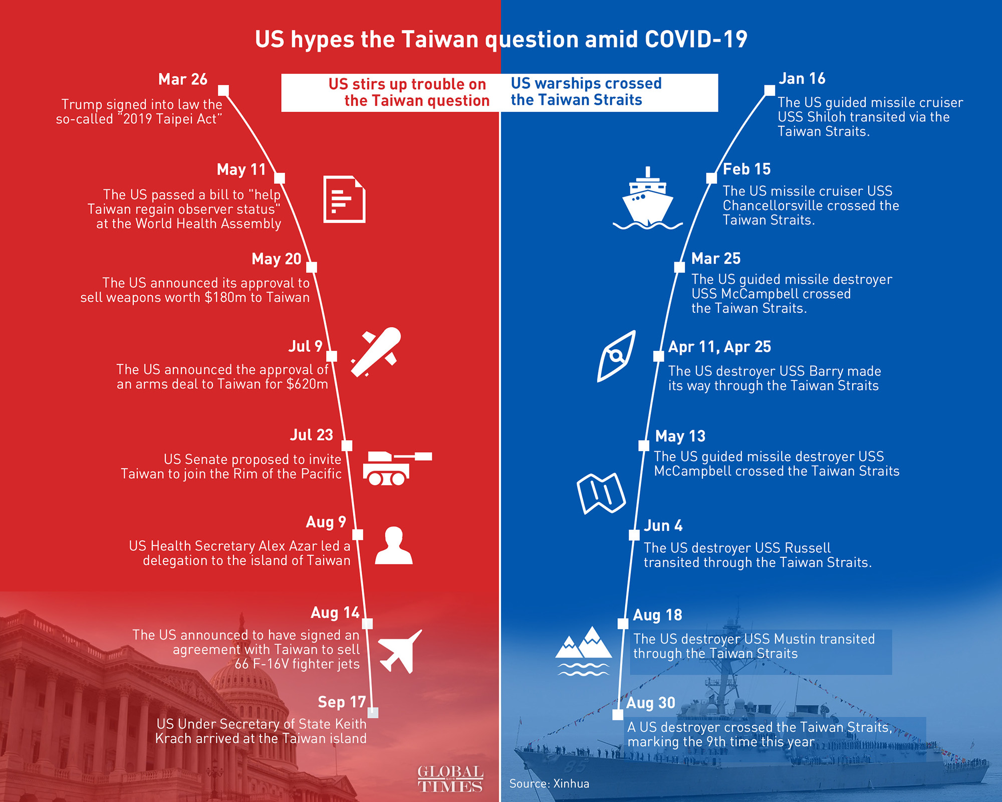 "When the technology and trade war cards are not working for them, the US is inclined to play the Taiwan card and the current provocations show it is lingering along the edge to break through the one-China policy," a Beijing-based expert on Taiwan affairs who requested anonymity told the Global Times.