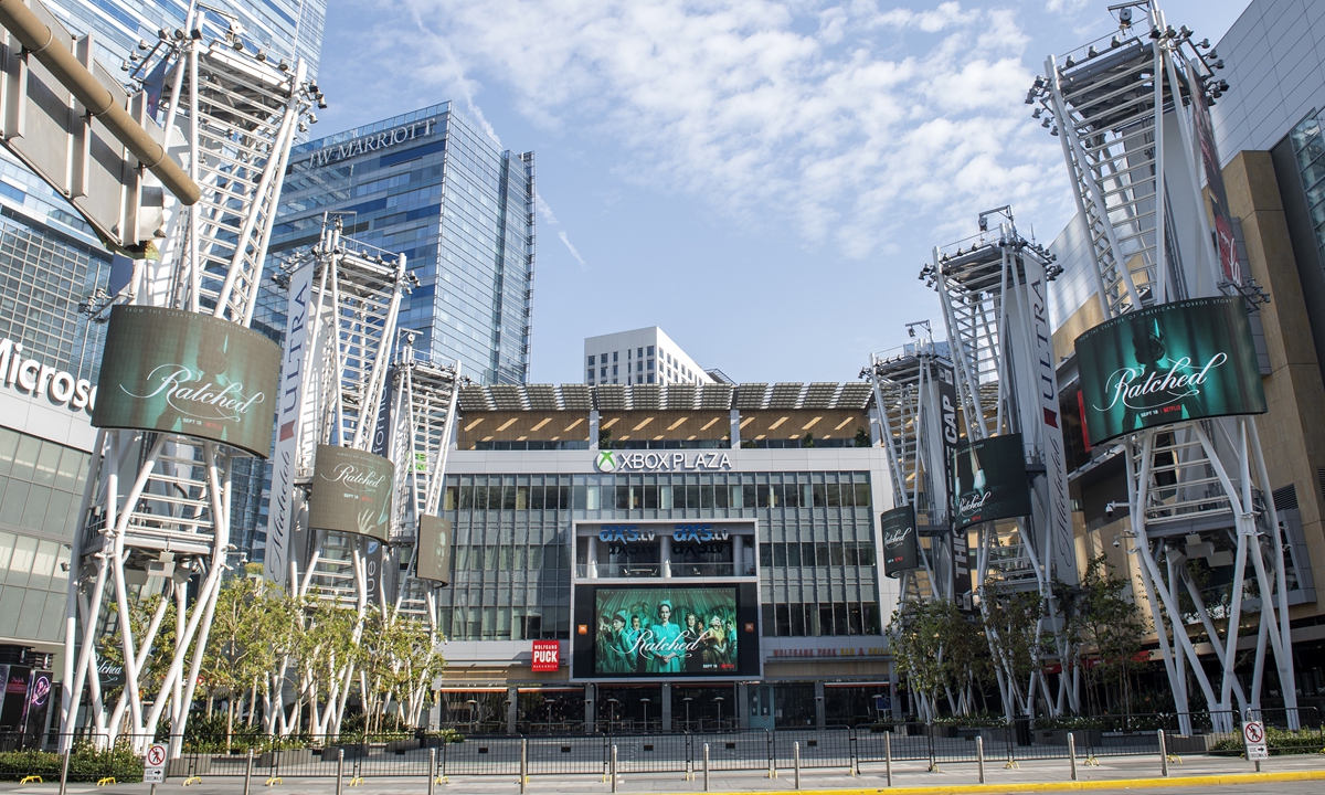 The LA Live Xbox Plaza in Los Angeles, usually crowded around the time of the Emmys, remains closed to the public amid the COVID-19 pandemic on Friday. Photo: AFP