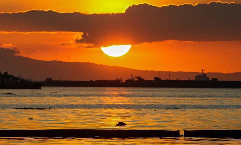A bird is seen during sunset at Manila Bay in Manila, the Philippines on Sept. 20, 2020. (Xinhua/Rouelle Umali)