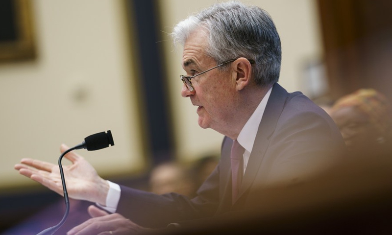 US Federal Reserve Chairman Jerome Powell testifies before the House Financial Services Committee during the Monetary Policy and the State of the Economy hearing on Capitol Hill in Washington D.C., the United States, on Feb. 11, 2020. (Photo by Ting Shen/Xinhua)