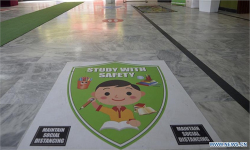 Students wearing face masks attend a class at a school in Karachi, Pakistan on Monday after educational institutes were reopened nearly six months after the spread of the coronavirus, which has caused more than 6,400 deaths in the country. Photo: AFP