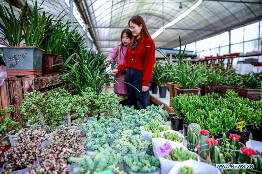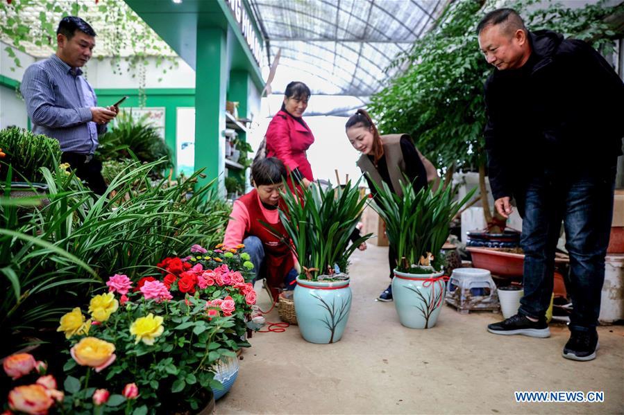 Customer choose flowers and seedlings during the Changxing flower and tree fair in Sian Town of Changxing County, east China's Zhejiang Province, Oct. 16, 2020. The Changxing flower and tree fair, exhibiting more than 1,000 species of flowers and trees, kicked off in Sian Town of Changxing on Friday. With the planting area of flowers and trees reaching 283,000 mu (about 18,867 hectares), the flower and tree business in Changxing has achieved a sales volume of nearly two billion yuan (about 298.6 million U.S. dollars) from January to September. (Xinhua/Xu Yu)