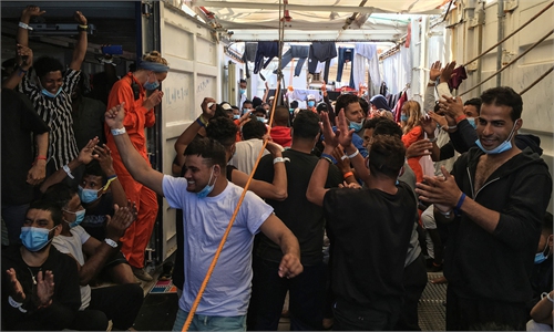 Survey ship Oruc Reis (middle) is escorted by Turkish Navy ships in the Mediterranean Sea on August 10. Photo: VCG