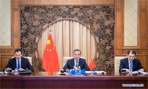 Chinese State Councilor and Foreign Minister Wang Yi (left 6) and foreign ministers of ASEAN countries attend the Special ASEAN-China Foreign Ministers' Meeting on Coronavirus Disease in Vientiane, Laos on February 20. Photo: Xinhua