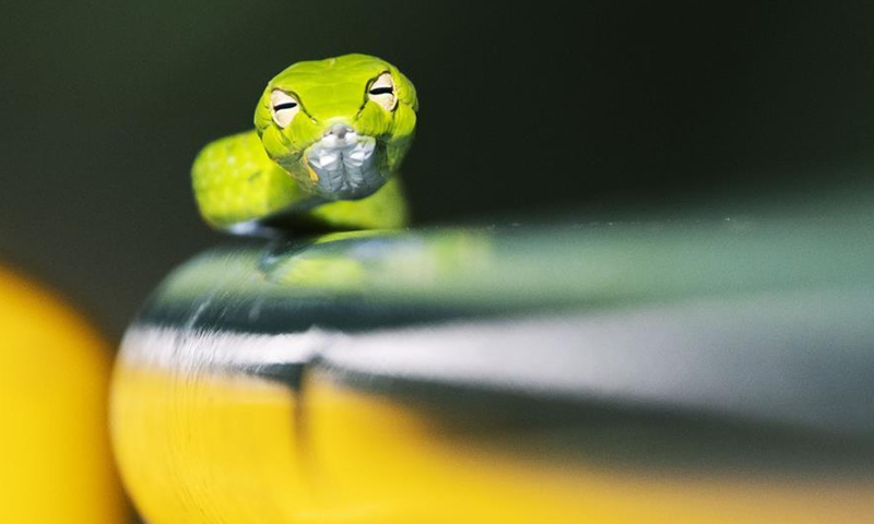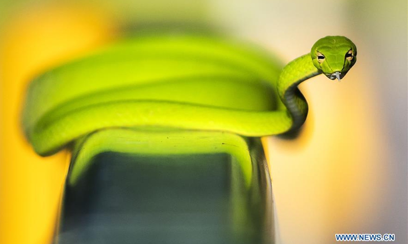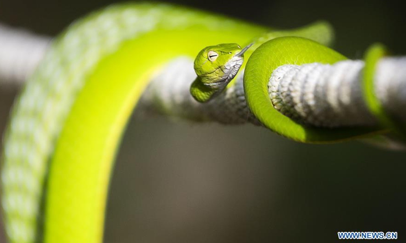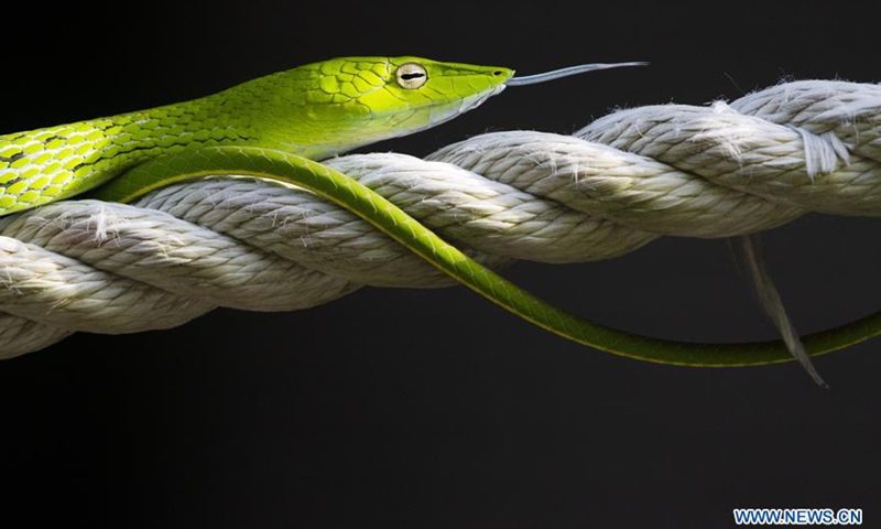 An oriental whip snake is seen at Singapore's Old Upper Thomson Road on Oct. 22, 2020.Photo:Xinhua
