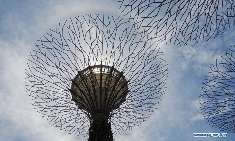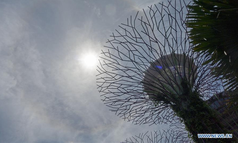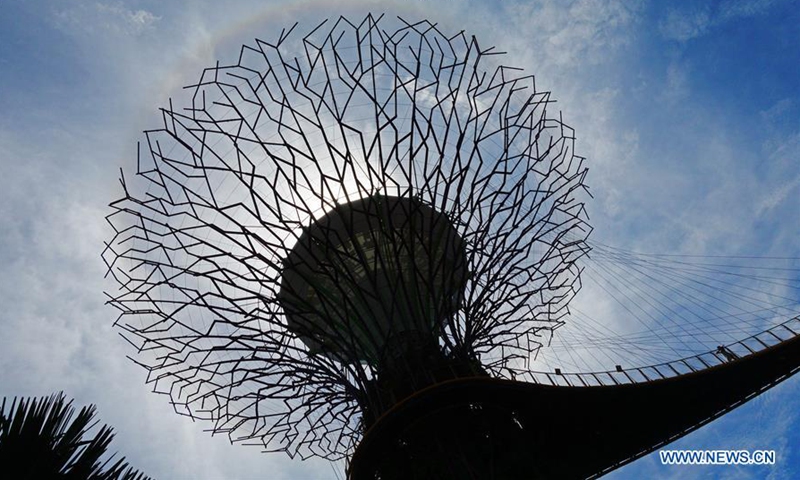 A sun halo appears in the sky above Singapore's Gardens by the Bay on Oct. 25, 2020. (Photo by Then Chih Wey/Xinhua)
