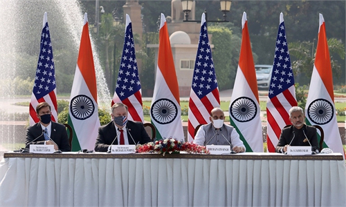 It also signals India's consistent stance on China-US relations. India endorses the US' anti-China position, yet it is unwilling to be pushed into the frontline by the US to check and balance China. New Delhi is willing to negotiate with Beijing on the border issues, but does not need Washington to pile pressure on it. What India needs most from the US is pragmatic benefits. Signing the BECA with the US and purchasing US' advanced weaponry will help India enhance its national power. Even so, India is still reluctant to provoke China in rhetoric with the US in a bid to avoid misunderstandings in Beijing.